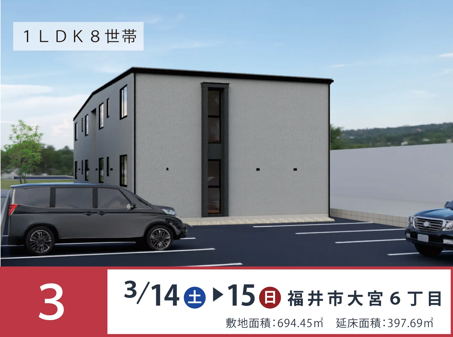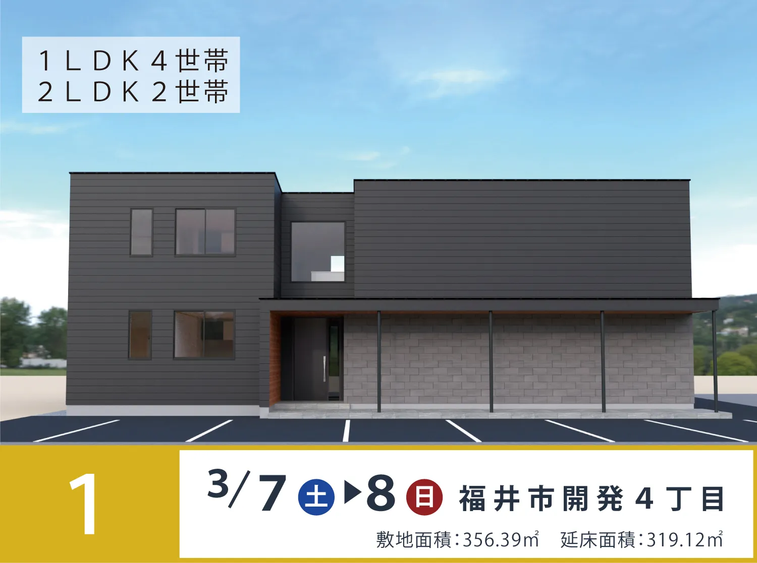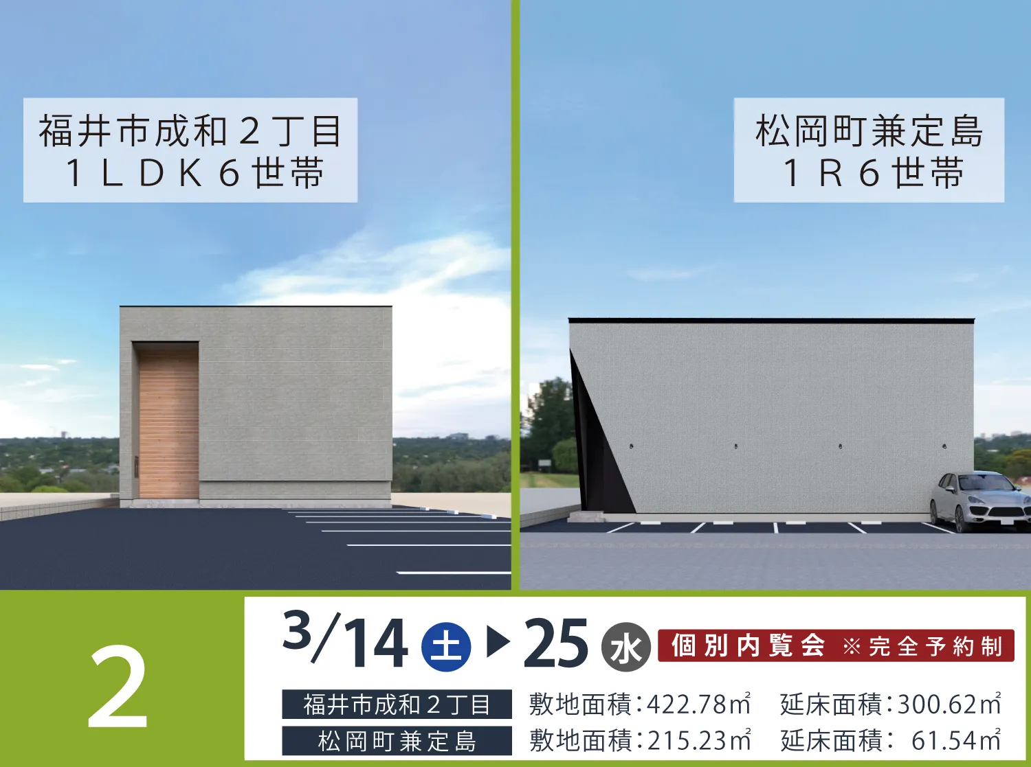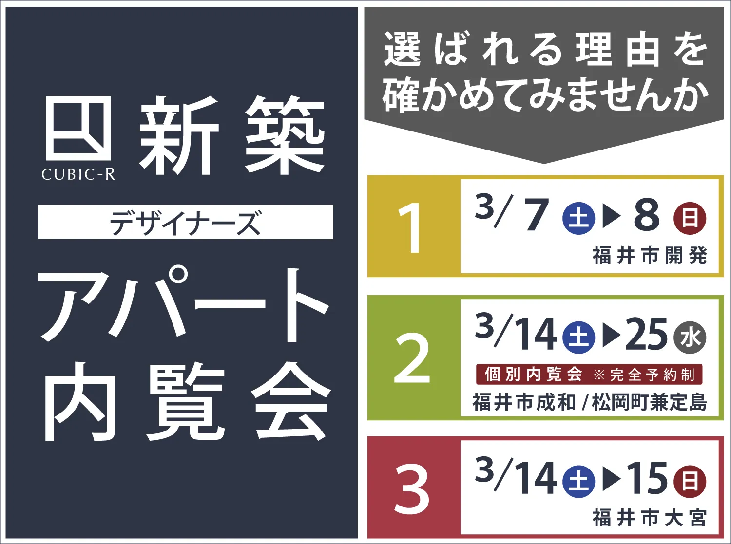 新築アパート内覧会 ・3/7-8福井市開発 ・3/14-25福井市成和/松岡町兼定島 ・3/14-15福井市大宮